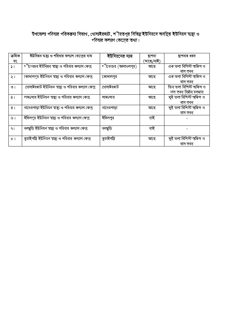 ৫। মোট ইউনিয়ন স্বাস্থ্য ও পরিবার কল্যান কেন্দ্র ০৬টি
